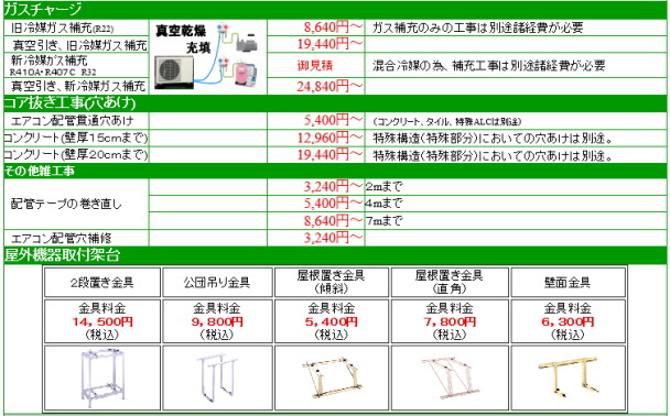※エアコンのガスチャージ ガスチャージ(ガス補充)を必要とする場合は別途になります。