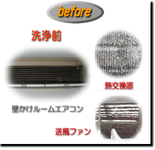エアコン内部に付着している「カビ・ホコリ・悪臭・雑菌等」嫌な臭いがしホコリ・カビ等を部屋中にまきちらかしアレルギーの原因になります。 |
